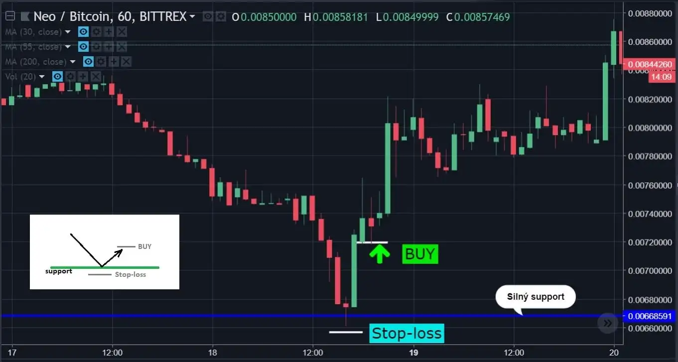 Preto ak chceme čo najviac zvýšiť šance na úspešný obchod je nevyhnutné počkať na nejaké potvrdenie, že došlo k skutočnému odrazu a otočeniu trendu. Svoje objednávky následne umiestnime do blízkosti supportu/rezistencie, no nikdy nie priamo na ne.